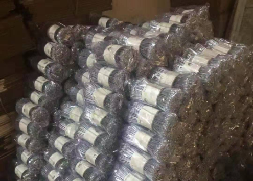 包塑絲的深加工制品有很多,都是方便綁扎的各種形狀的綁絲產品,比如:包塑扣絲,小盤絲,密排絲,U型絲,捆絲等等,有的折成彎,有的擰成鉤和圈,在綁扎的時候用工具把綁絲擰起來,擰緊,就打好了一個包裝,包塑絲做出來的綁絲,表面的塑料有一定的彈性,不易損壞產品表面。
